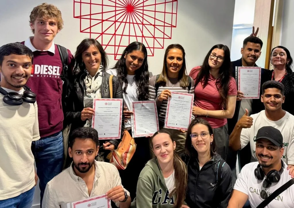 Un momento della vita scolastica: studenti internazionali durante la consegna dei certificati di fine corso – © Atlas Language School.